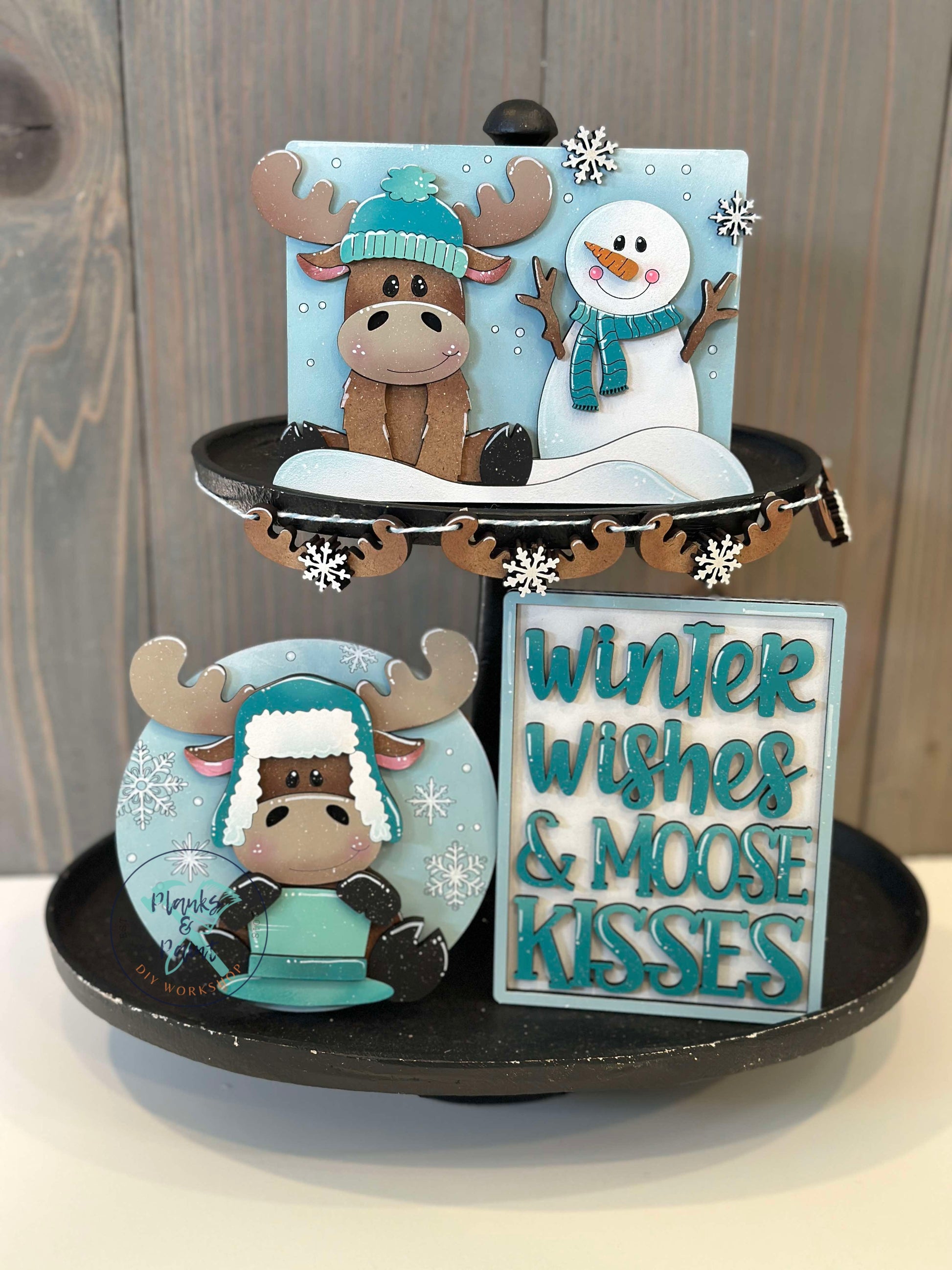 Moose Kisses Winter Tiered Tray Set TT1446